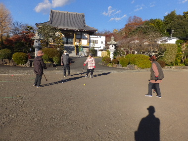駐車場にて12日講のメンバーで2回目のグランドゴルフを行ないました