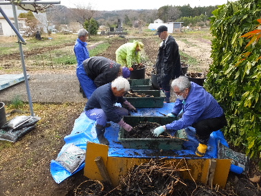 今年は3月3日(土)午後〜と4日(日)午前中で、9名の方にお手伝いいただき植え替え作業を行い